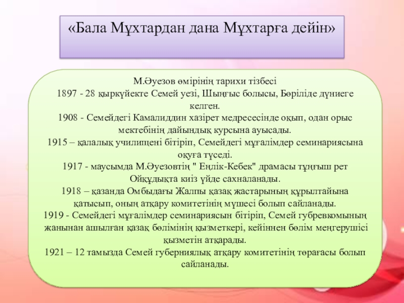 Слайд 2«Бала Мұхтардан дана Мұхтарға дейін»
