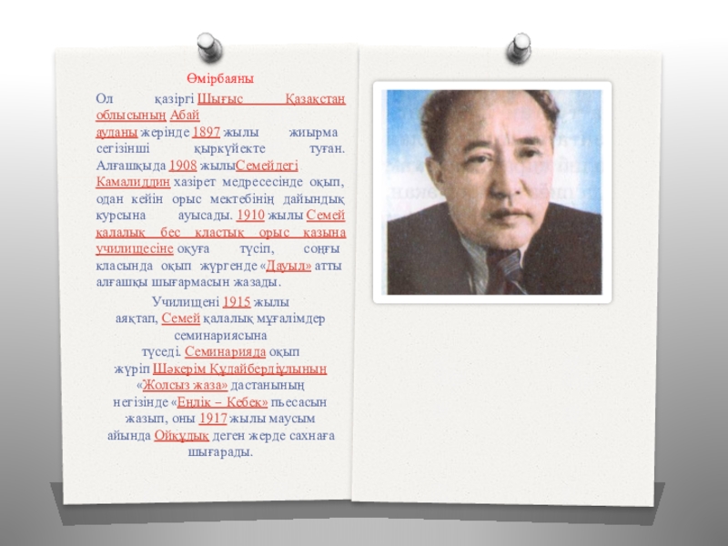 Презентация, доклад на тему Қазақ әдебиеті пәнінен М.Әуезовтің өмірі мен шығармашылығы