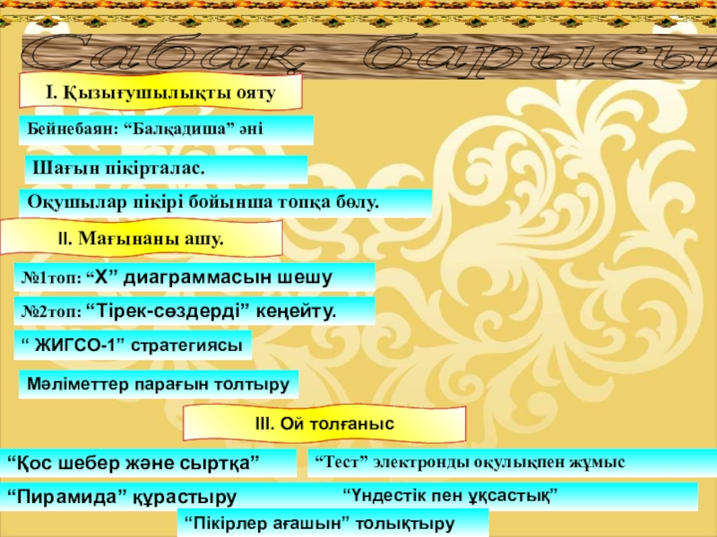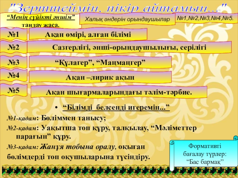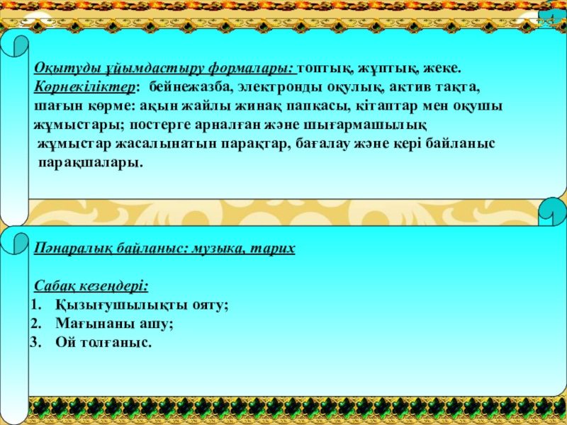 тақырыптық-көрнекілік, проблемалық-ізденушілік,білімді өзіндік игеру)