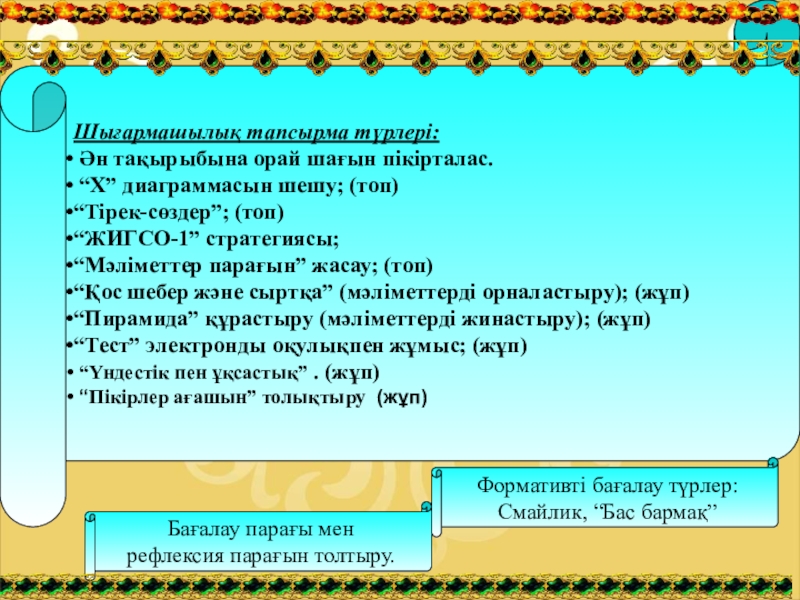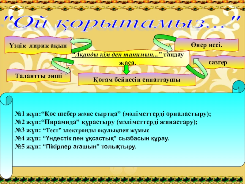 Сабақ түрі:шығармашылық, зерттеушілік сабағы.