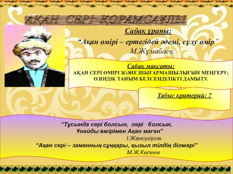 Сабақ тақырыбы: “Ақан сері Қорамсаұлы.”