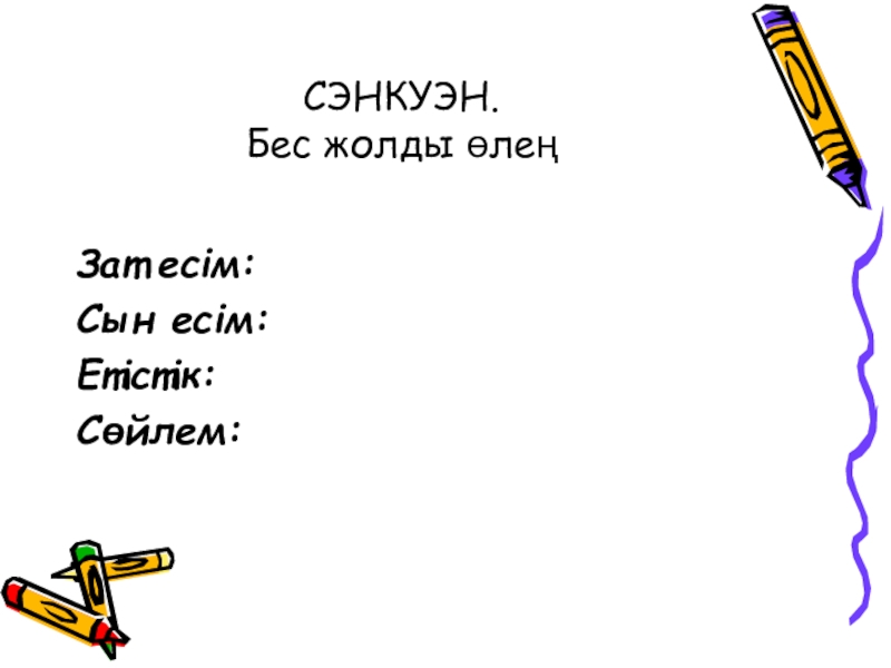 СЭНКУЭН. Бес жолды өлеңЗат есім:Сын есім:Етістік:Сөйлем: