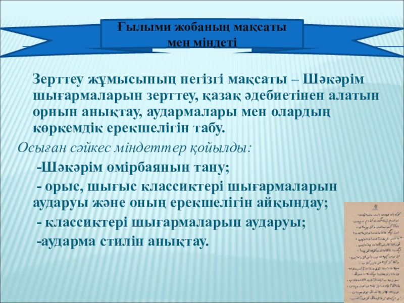 Ғылыми жобаның мақсаты мен міндеті