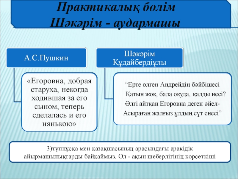 3)түпнұсқа мен қазақшасының арасындағы аракідік
