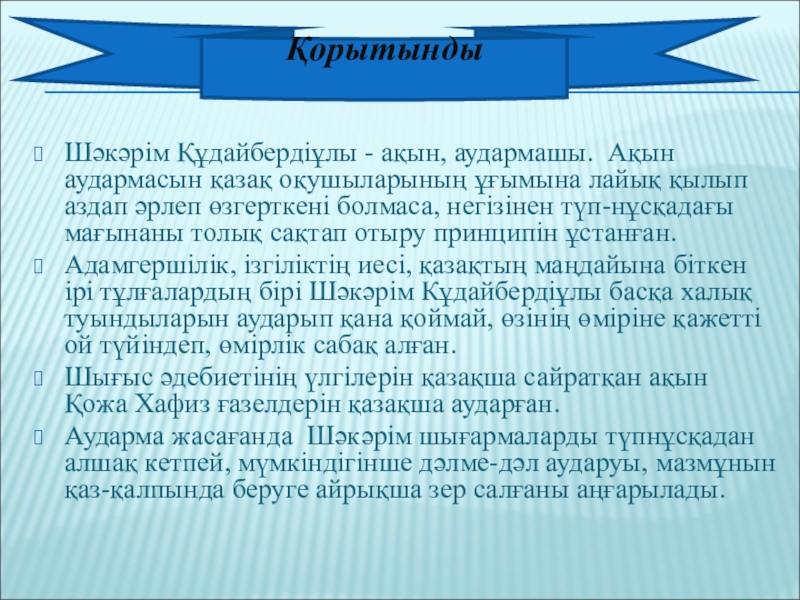 Шәкәрім - аудармашы