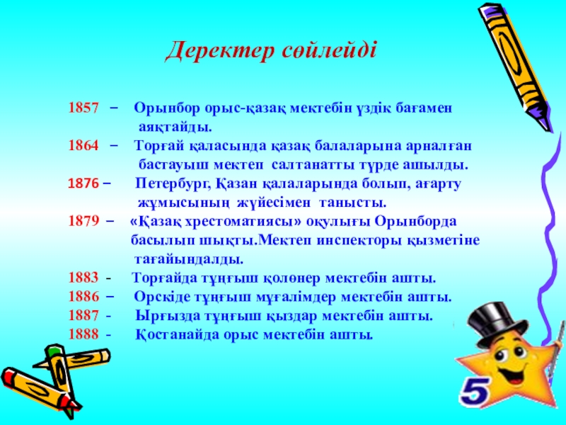 Деректер сөйлейді1857  –  Орынбор орыс-қазақ мектебін үздік бағамен