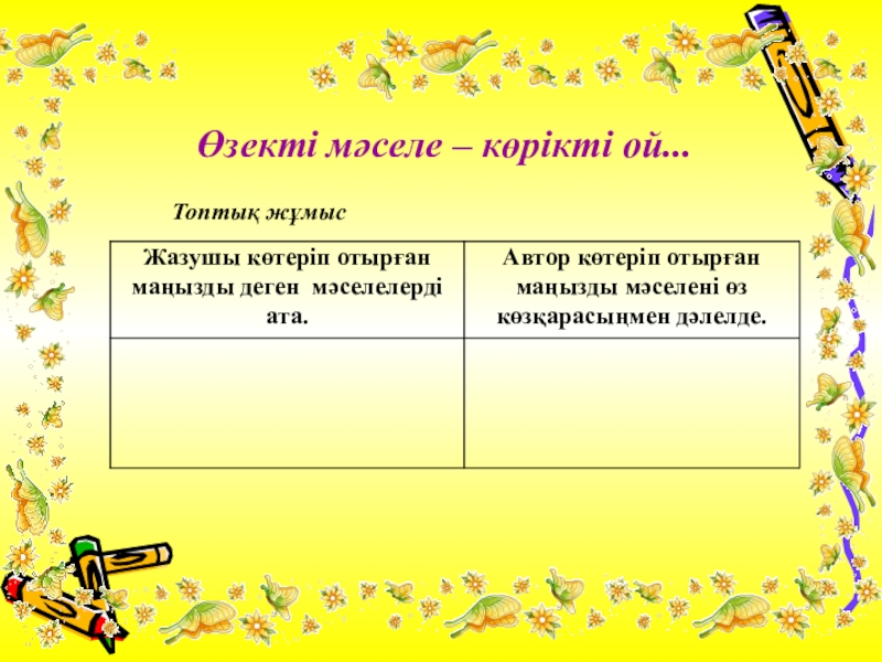 Өзекті мәселе – көрікті ой...Топтық жұмыс