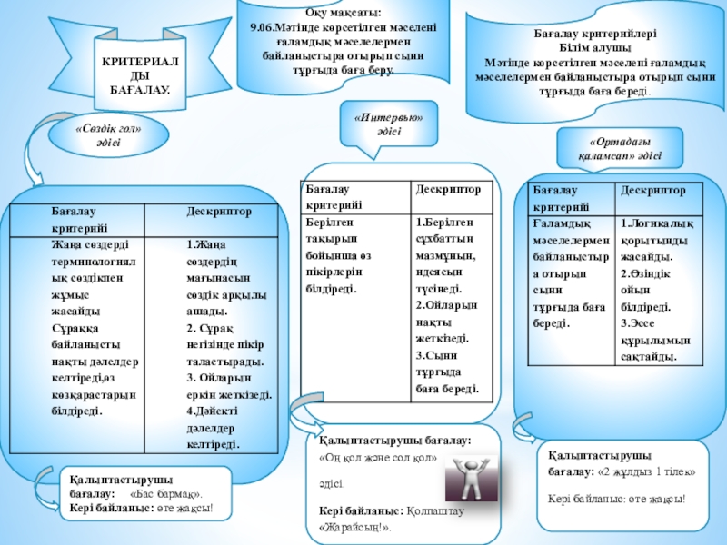 Дескрипторларды критерийлерге сай қою туралы,саралау тапсырмаларын әр сабақта беріліп отыру туралы мәлімет берілді.