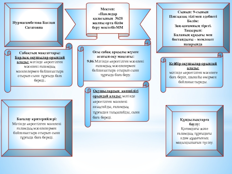 ҚМЖ жасауда сыныптар бойынша күтілетін нәтиже-лер түрінде оқыту мақсаттары жүйесаспімен төрт дағдысын(тыңдалым, айтылым, оқылым, жазылым);түсіндім.