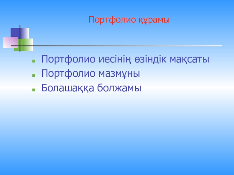 Портфолио бұл оқушының бар ынтасының, күш жігерінің, дамуының, жетістіктерінің, оқушы шығармашылығының, нәтижелерінің коллекциясы.
