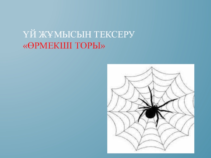Слайд 4Үй жұмысын тексеру «Өрмекші торы»