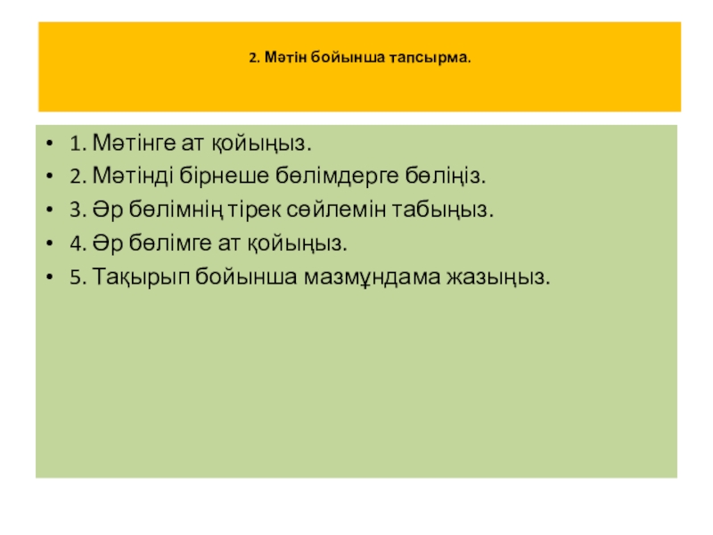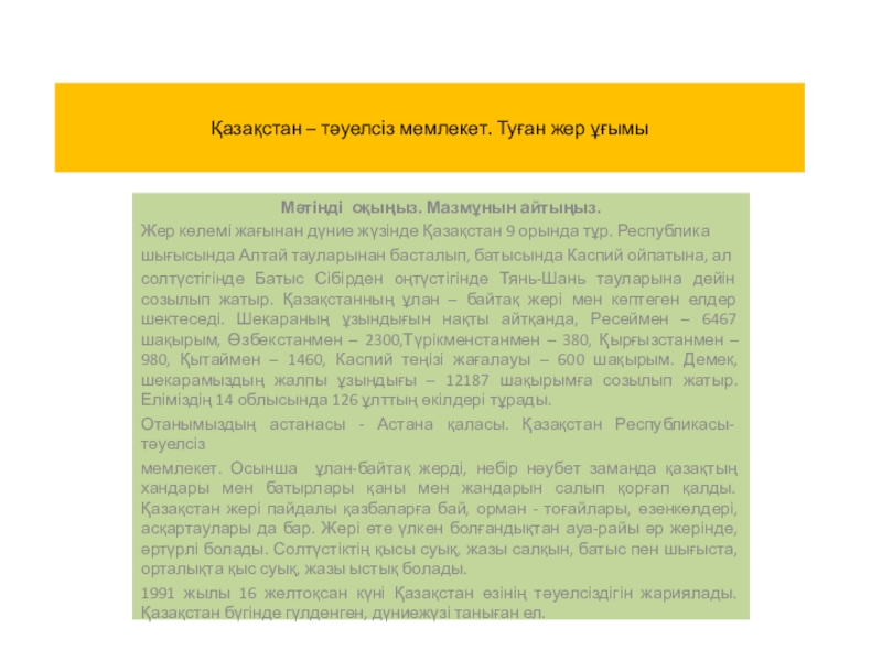 Мәтінді оқыңыз. Мазмұнын айтыңыз.
