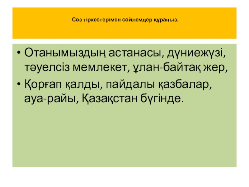 Отанымыздың астанасы, дүниежүзі, тәуелсіз мемлекет, ұлан-байтақ жер,