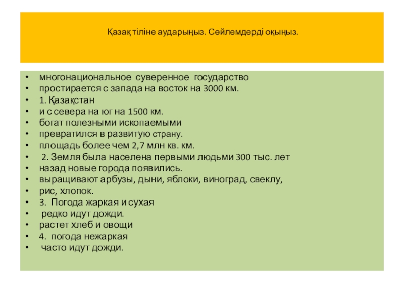 Слайд 6 Қазақ тіліне аударыңыз. Сөйлемдерді оқыңыз.