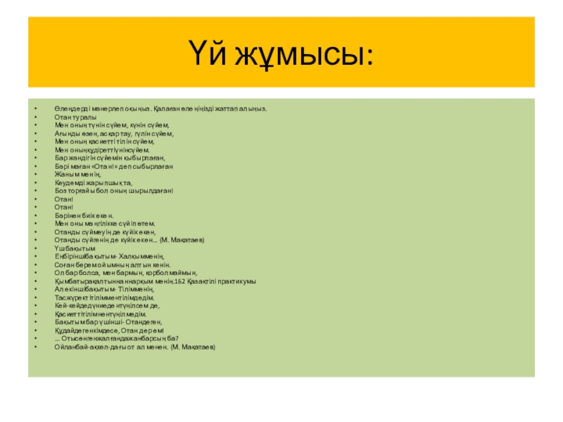 Өлеңдерді мәнерлеп оқыңыз. Қалаған өлеңіңізді жаттап алыңыз.