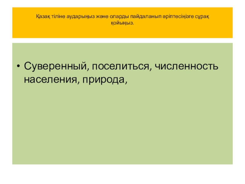 Слайд 7Қазақ тіліне аударыңыз және оларды пайдаланып әріптесіңізге сұрақ