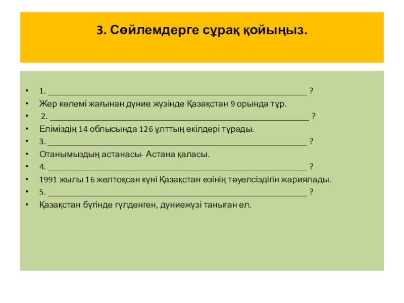 Слайд 33. Сөйлемдерге сұрақ қойыңыз.