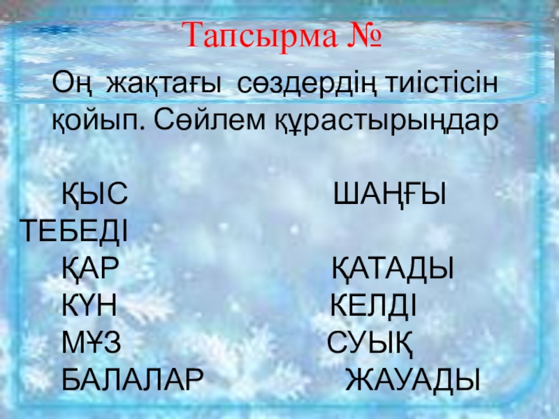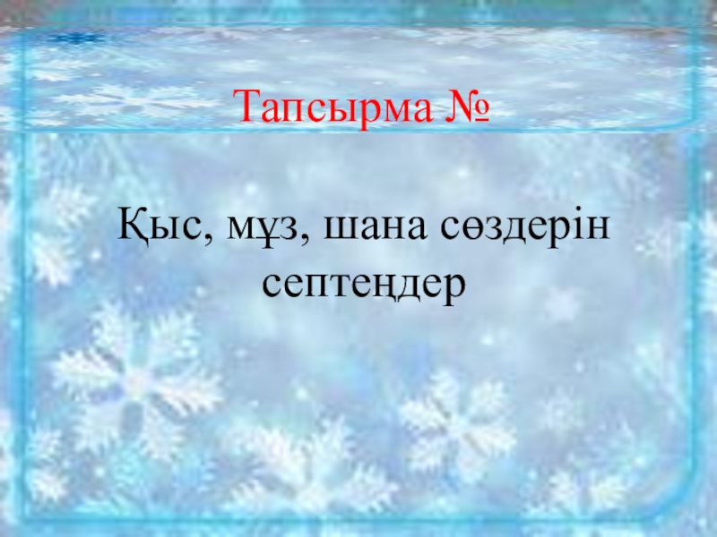 Тапсырма №Қыс, мұз, шана сөздерін септеңдер