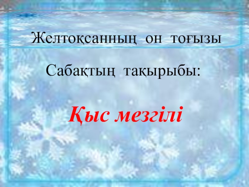 Желтоқсанның он тоғызыСабақтың тақырыбы: Қыс мезгілі