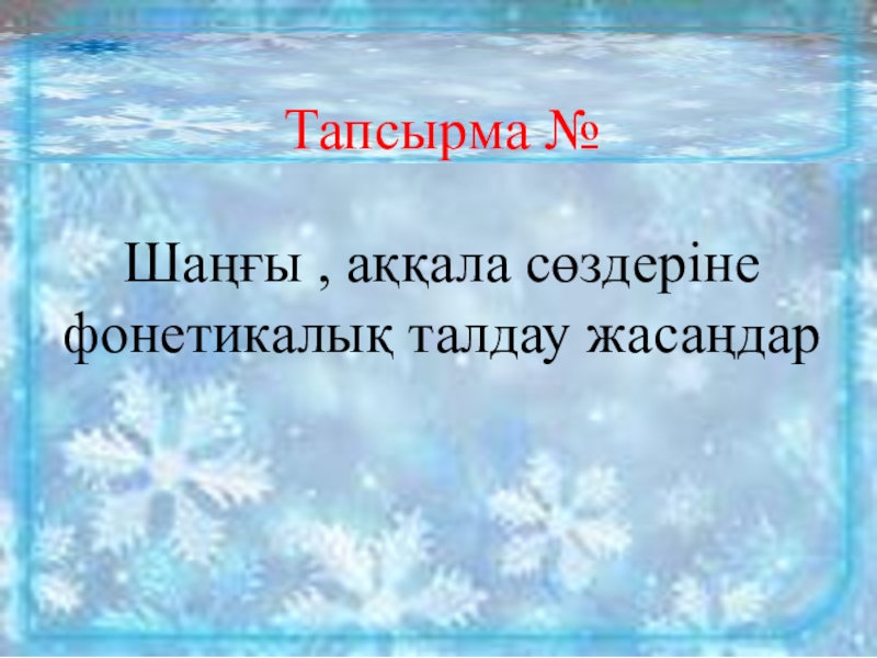 Тапсырма №Шаңғы , аққала сөздеріне фонетикалық талдау жасаңдар