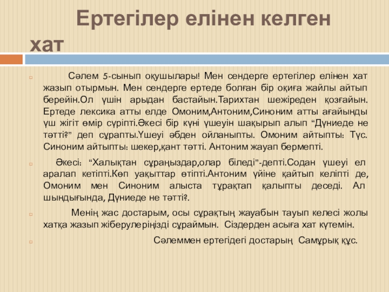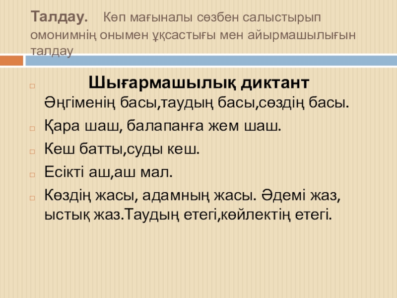 Шығармашылық диктант Әңгіменің басы,таудың басы,сөздің басы.