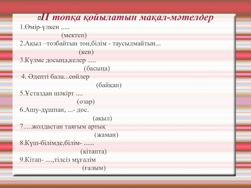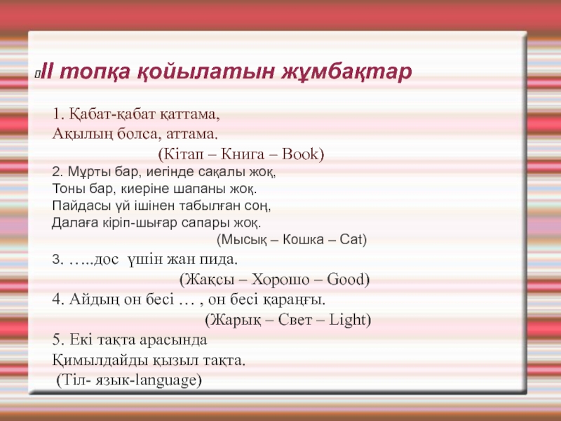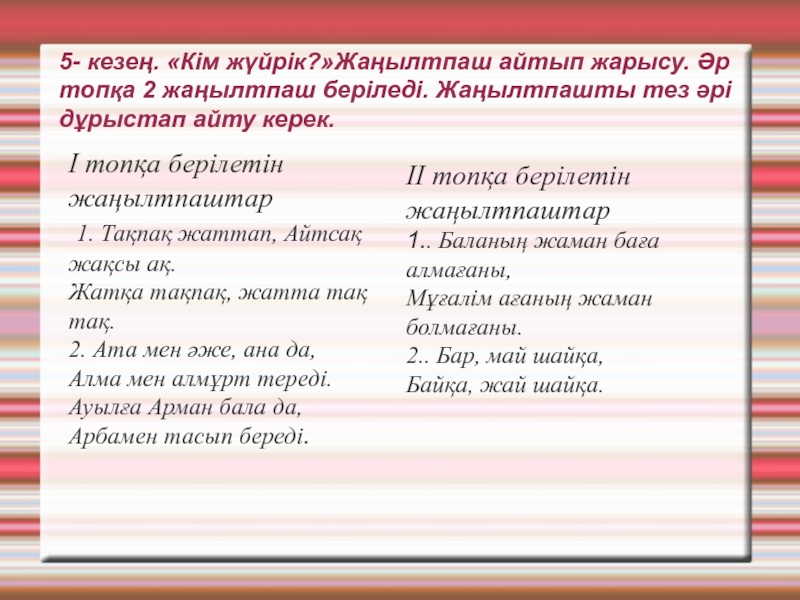 ІІ топқа берілетін жаңылтпаштар