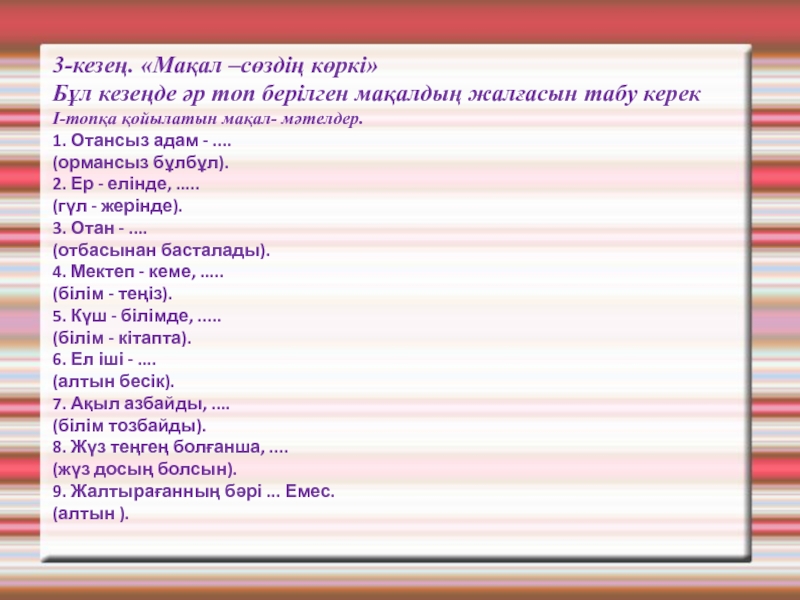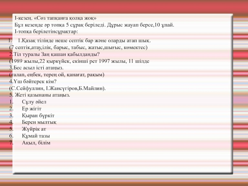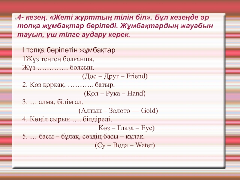 I-кезең. «Сөз тапқанға қолқа жоқ»