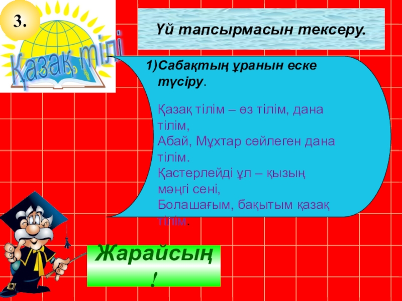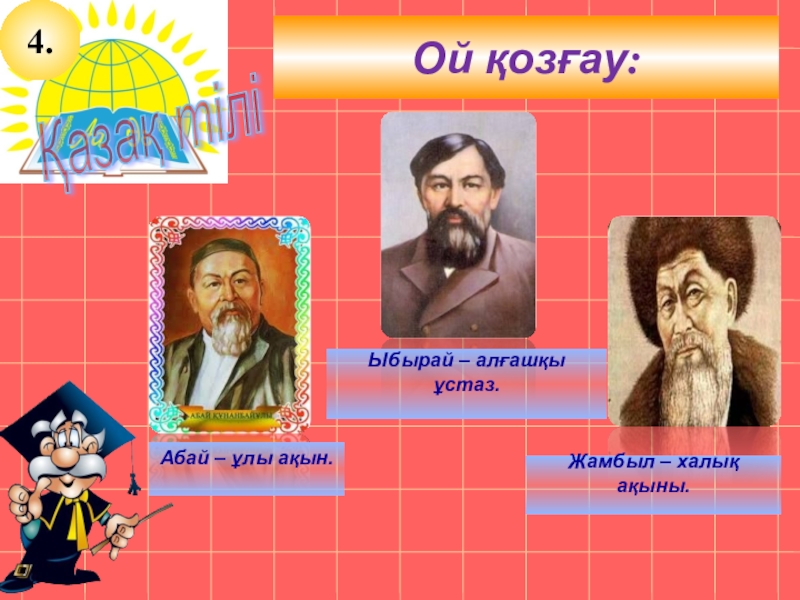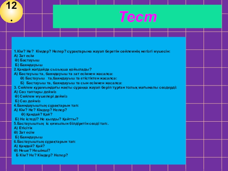 Сабақтың көрнекілігі: семантикалық карта, тест тапсырмалары, төрт