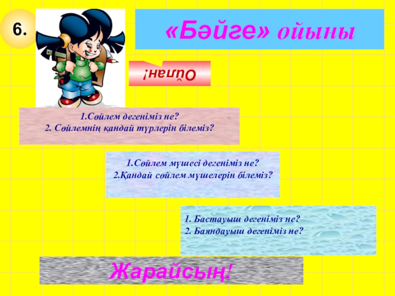 Сабақтың әдісі: сұрақ – жауап, түсіндіру, ой қозғау, ойын.