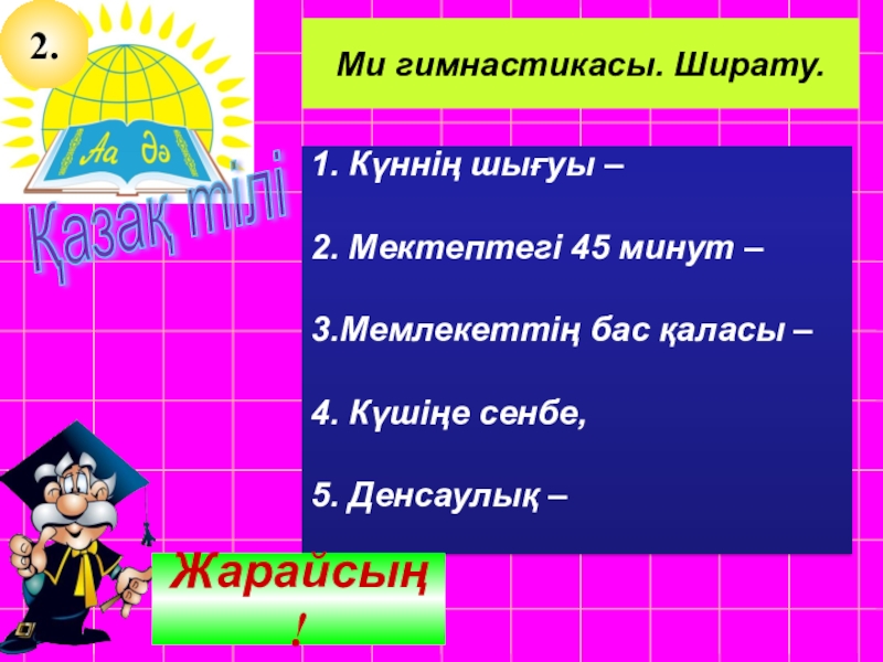 оқушылардың ой – өрісін дамыту, өз ойын жүйелі жеткізуге дағдыландыру.