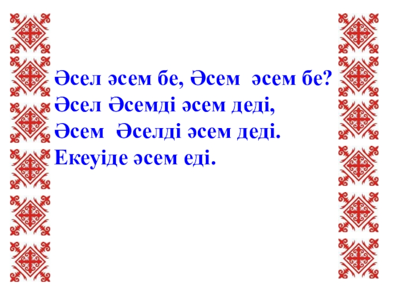 Әсел әсем бе, Әсем әсем бе?Әсел Әсемді әсем деді, Әсем