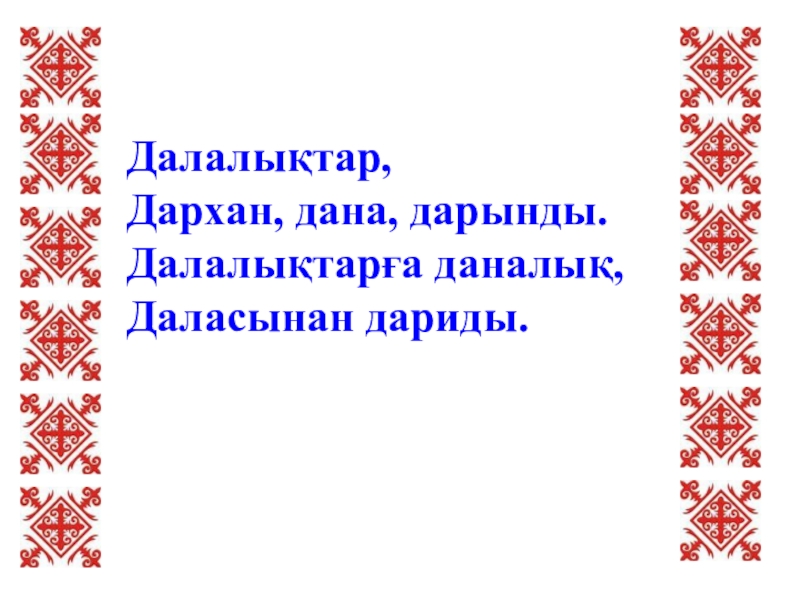 Далалықтар,Дархан, дана, дарынды.Далалықтарға даналық,Даласынан дариды.
