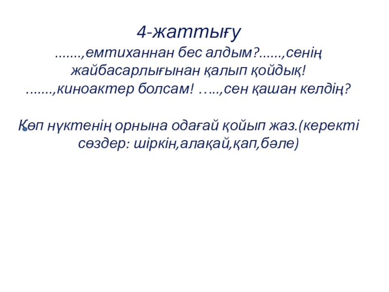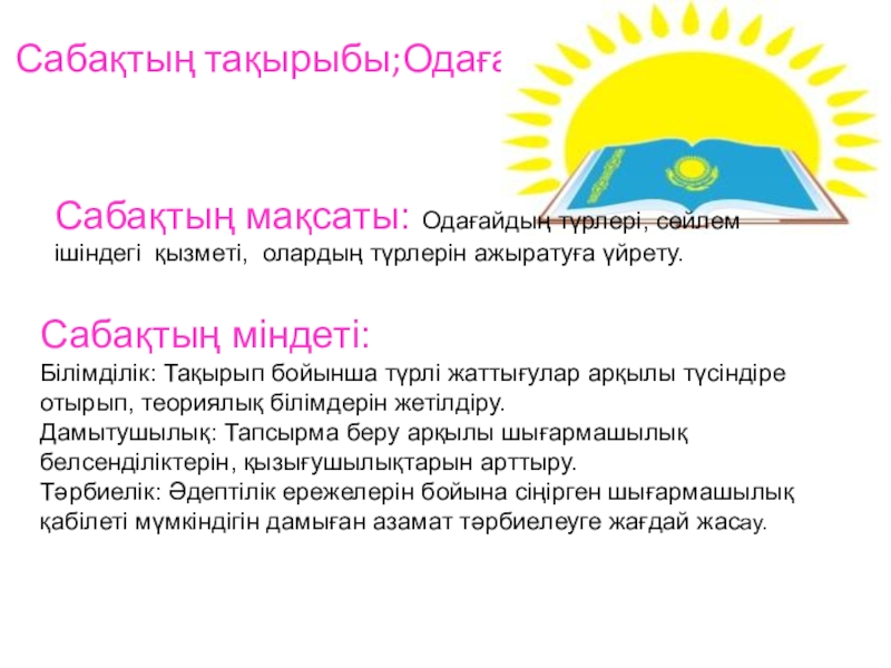 Білімділік: Тақырып бойынша түрлі жаттығулар арқылы түсіндіре отырып, теориялық білімдерін жетілдіру.