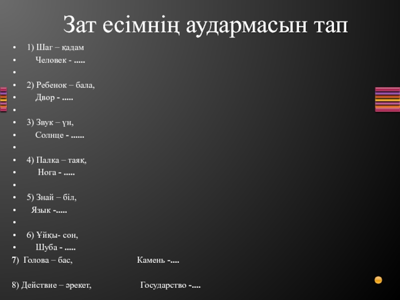 Зат есімнің аудармасын тап