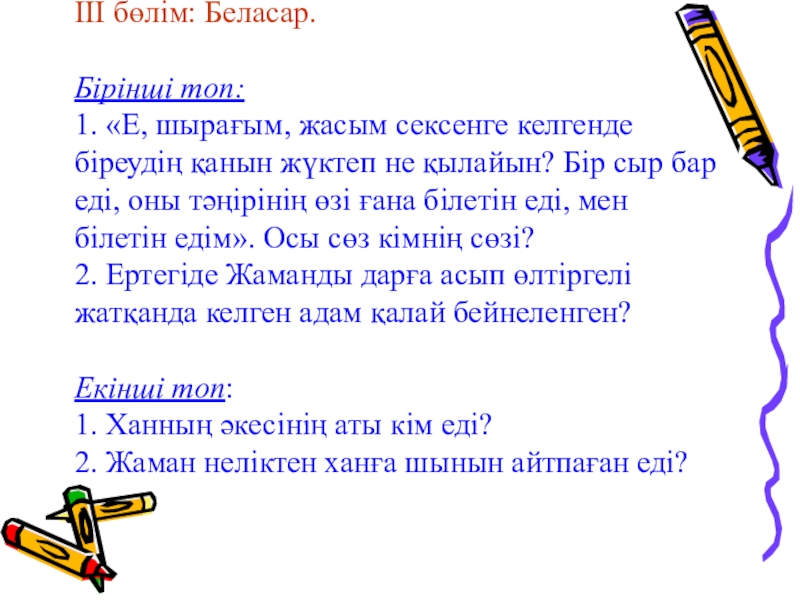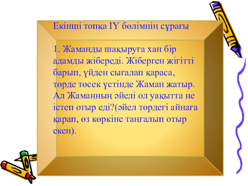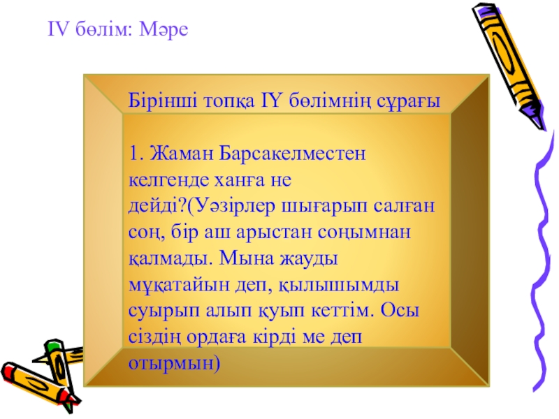Бірінші топқа ІҮ бөлімнің сұрағы