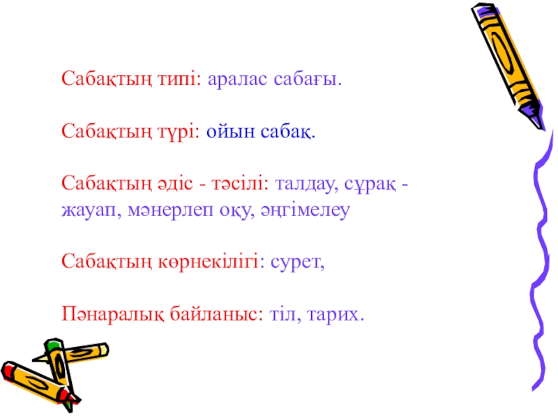 2. Дамытушылық: Оқушылардың логикалық ойын кеңейту, сөйлеу мәдениетін арттыру, сөздік қорларын молайту, шығармашылық қабілетін ұштау.