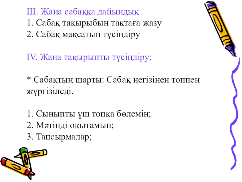 Слайд 6ІІІ. Жаңа сабаққа дайындық