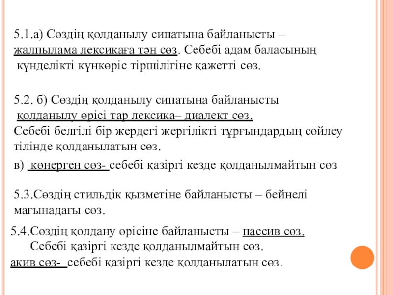 5.2. б) Сөздің қолданылу сипатына байланысты