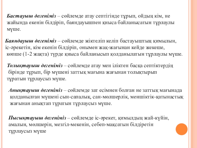 қолданылған мүшені сын-сапалық, сан-мөлшерлік, меншіктік-қатынастық