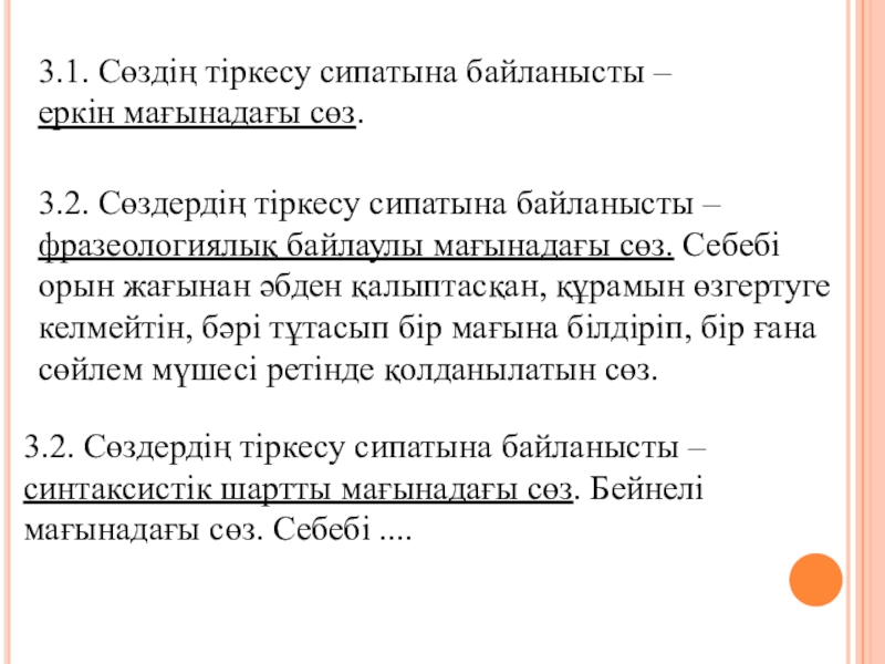 3.1. Сөздің тіркесу сипатына байланысты –