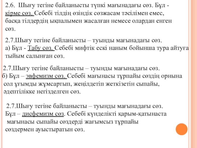 2.7.Шығу тегіне байланысты – туынды мағынадағы сөз.