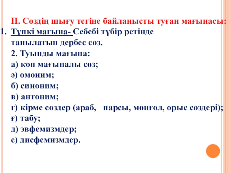 2.2. Шығу тегіне байланысты туынды мағынадағы сөз.