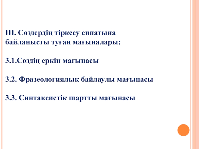 3.2. Сөздердің тіркесу сипатына байланысты – синтаксистік шартты мағынадағы сөз. Бейнелі мағынадағы сөз. Себебі ....