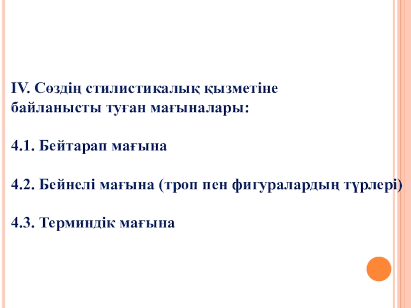 4.2. Сөздің стилистикалық мағынасына байланысты – бейнелі мағынадағы сөз. Себебі адамның сезімі мен көңіл-күйіне байланысты айтылатын эмо-ционалды мағынада қолданылатын сөз.