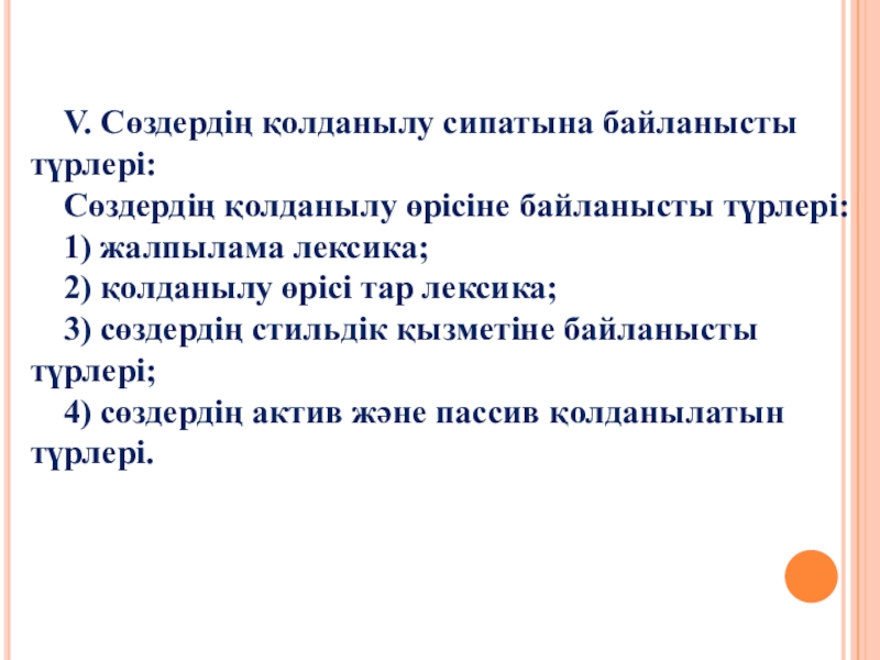 5.4.Сөздің қолдану өрісіне байланысты – пассив сөз.