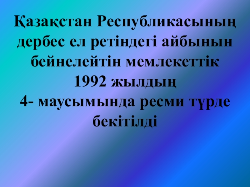 Слайд 11Қазақстан Республикасының дербес ел ретіндегі айбынын бейнелейтін мемлекеттік 1992 жылдың 4-