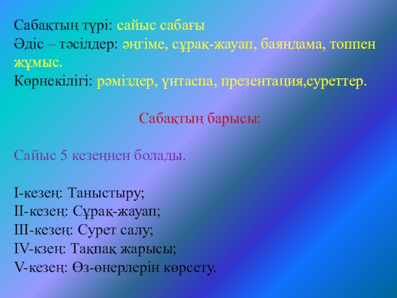 Слайд 4Сабақтың түрі: сайыс сабағы