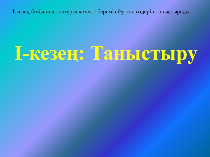 Слайд 5І-кезең бойынша топтарға кезекті береміз.Әр топ өздерін таныстырады.