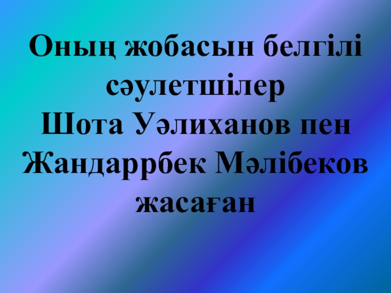 Слайд 12Оның жобасын белгілі сәулетшілер