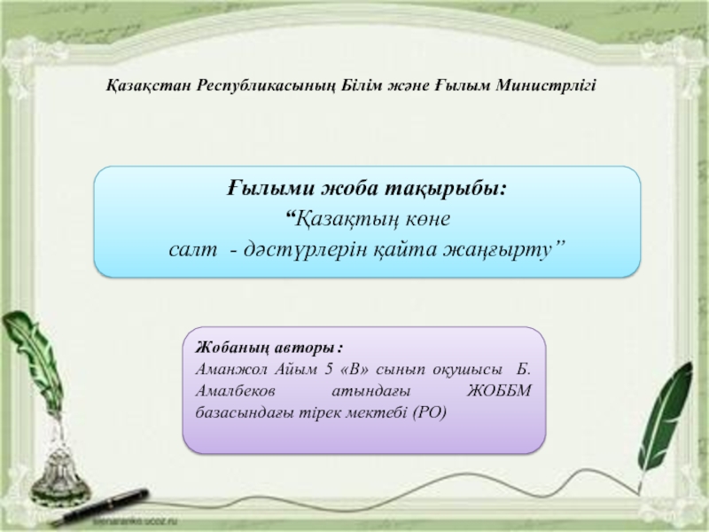 Жобаның авторы : Аманжол Айым 5 «В» сынып оқушысы Б.Амалбеков атындағы ЖОББМ базасындағы тірек мектебі (РО)